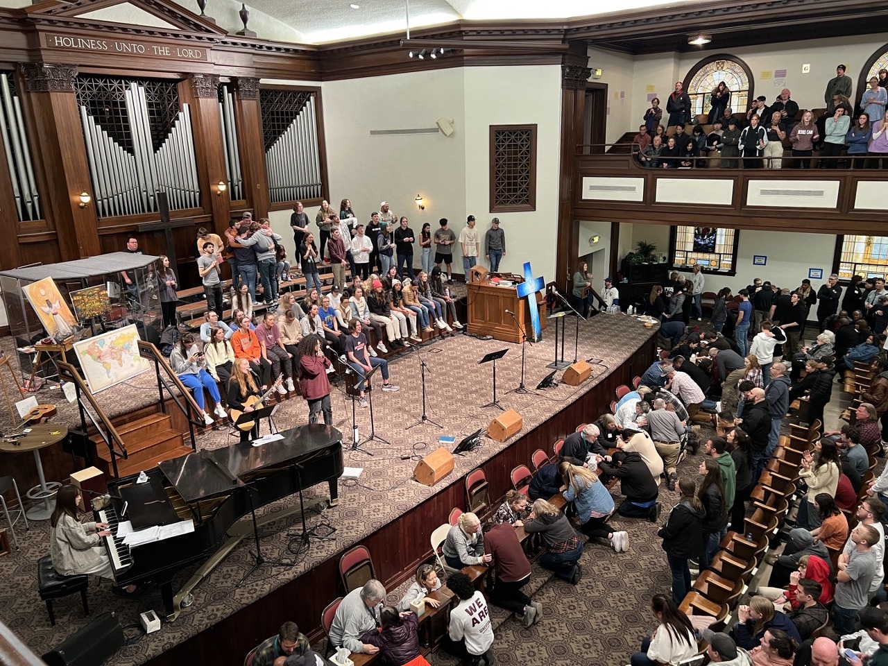 “미국 전역에서 온 사람들이 부흥의 이야기가 일어난 휴즈 예배당으로 걸어오고 있었습니다.”라고 그는 말했습니다. 캠퍼스 잔디밭 여기저기에 수십 명이 모여서 자연스럽게 찬양과 기도가 흘러나왔고 무릎을 꿇고 기도하는 사람들의 모습이 무척 평화로워 보였습니다.”