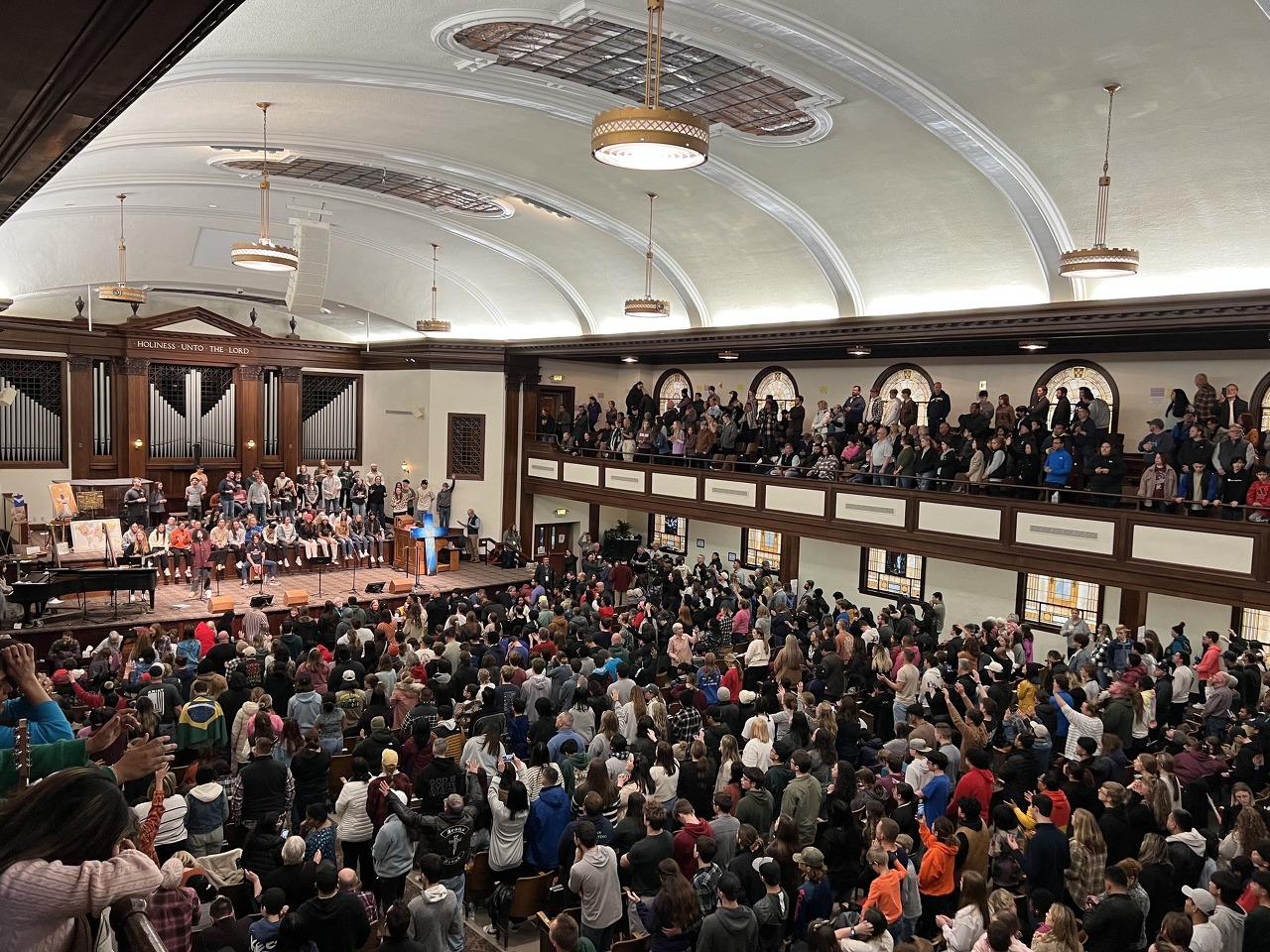 류 목사는 “2월 20일 월요일 일찍 비행기에 탑승해 인구 6000명의 도시인 켄터키주 윌모어에 있는 애즈버리 대학교에서 일어난 놀라운 부흥의 역사를 내 눈으로 직접 보고 체험했다. 루이빌에서 윌모어 공항까지 끝없이 펼쳐진 옥수수 밭과 탁 트인 평야로 이루어져 있었고, 학교에 가까워질 즈음에는 수천 명의 사람들이 줄을 서 있었습니다.”
