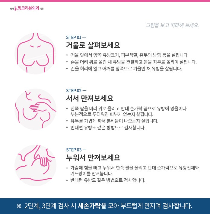 유방암인지 섬유선종인지 알기 위해서는 유방암의 증상을 몇 가지 알아두는 것이 좋습니다. 자가진단은 증상만 알아도 어느정도 자가진단이 되니 잘 지켜봐야 겠습니다. 혹, 유방 크기, 분비물, 통증, 덩어리 등이 유방암의 주요 증상이며, 유방 피부의 변화를 정기적으로 관찰하여 함몰 여부를 확인해야 합니다.