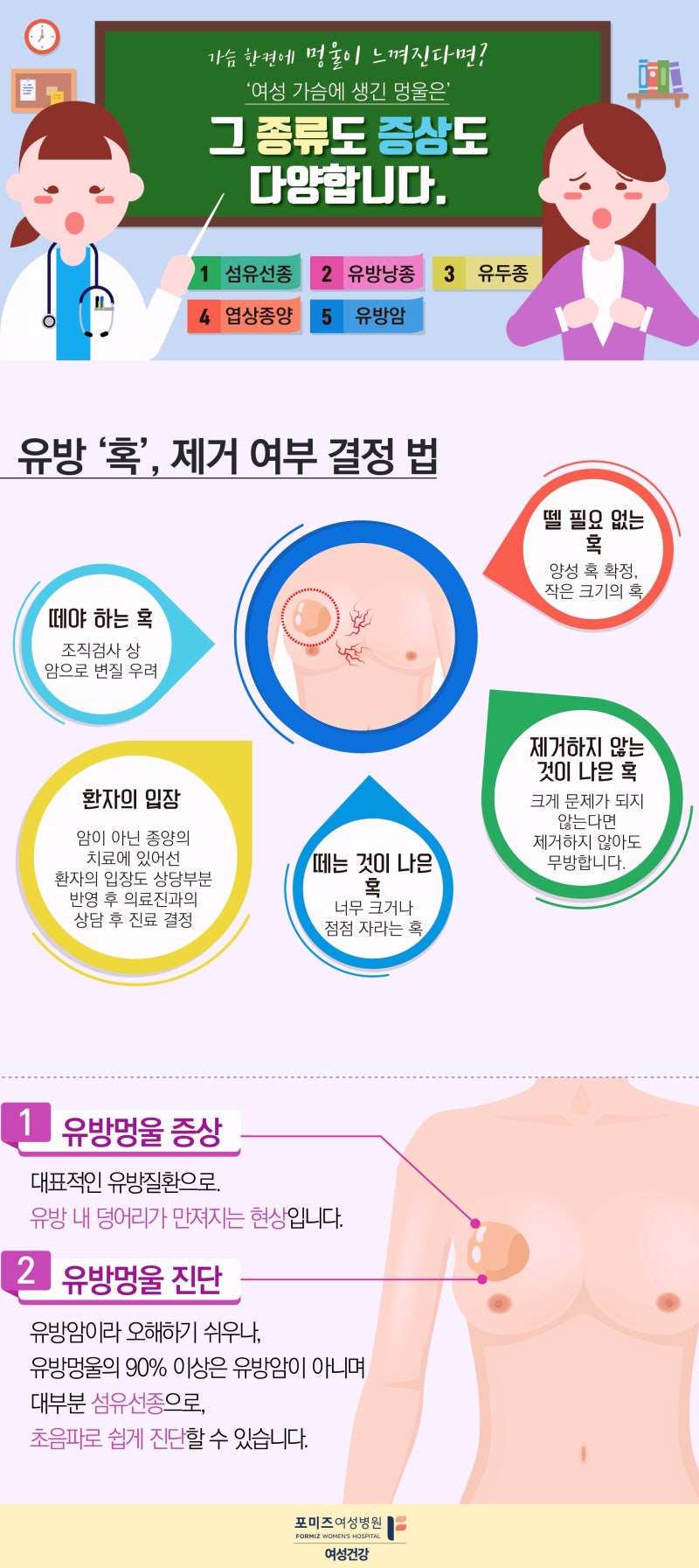 멍울, 통증, 분비물, 습진 등 다양한 증상 중 하나가 유방암이나 유방섬유종을 의심하는 증상이라도 병원에 가서 검사를 받는 것이 중요합니다. 유방암은 전 세계적으로 증가하고 있어 우리나라 암 중 가장 흔한 암이다.단계별 맞춤 치료