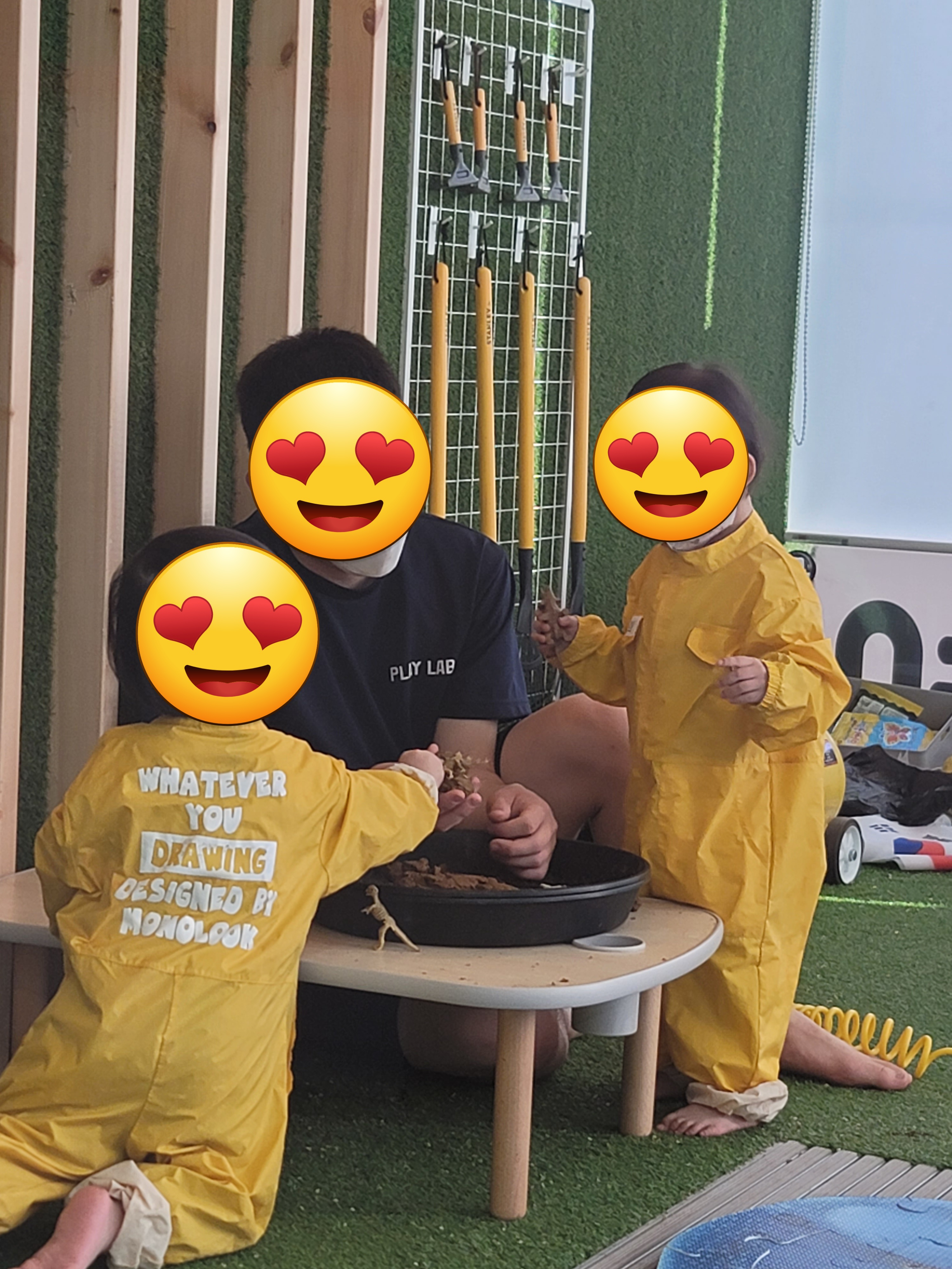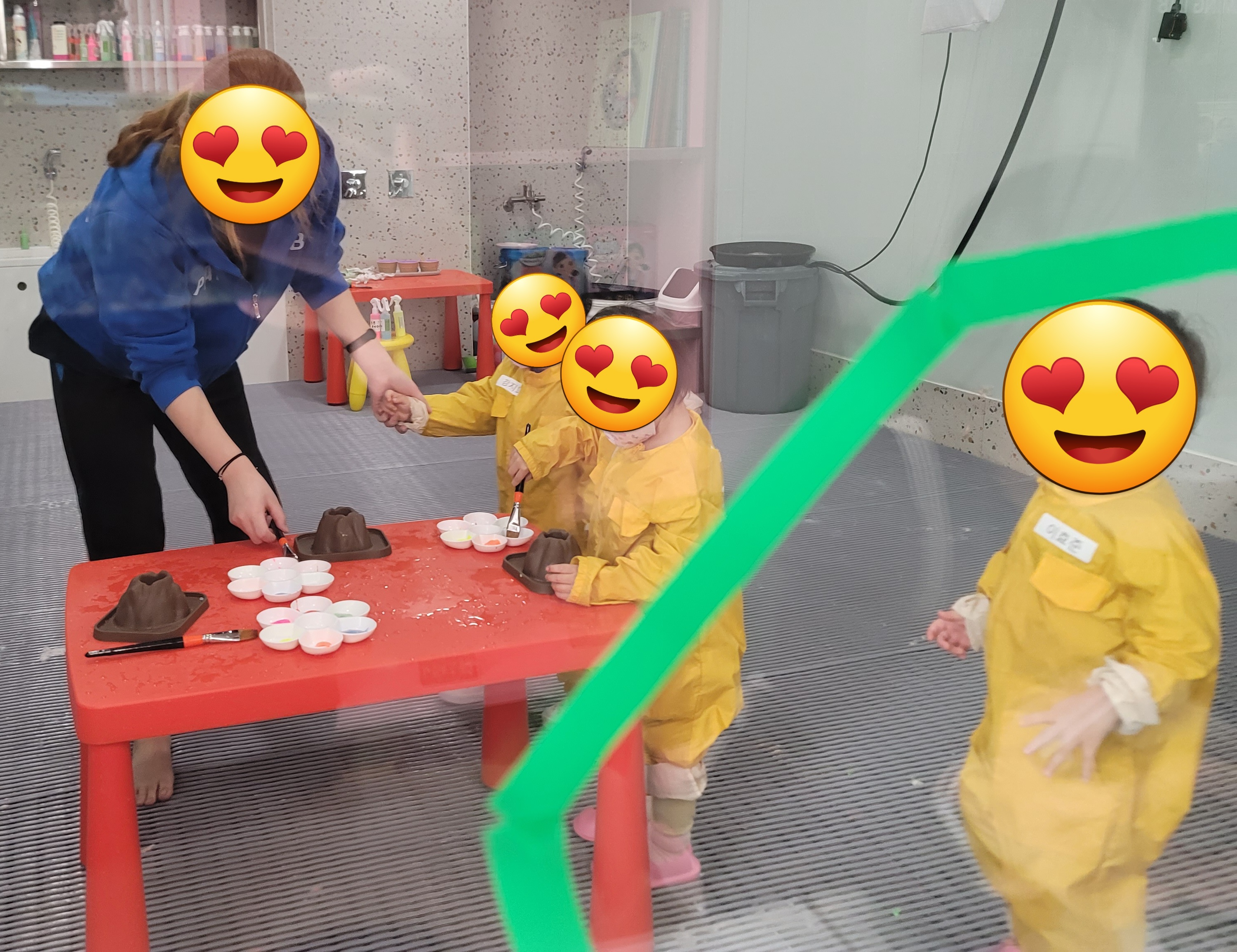 아, 플레이랩에서는 체험이 부모님과 함께 하는 것이 아니라 아이들이 체험장에 들어가 선생님과 레슨을 받는 동안 부모님이 창밖을 내다보게 됩니다. 밖에서 우리 아이를 볼 수 있어요