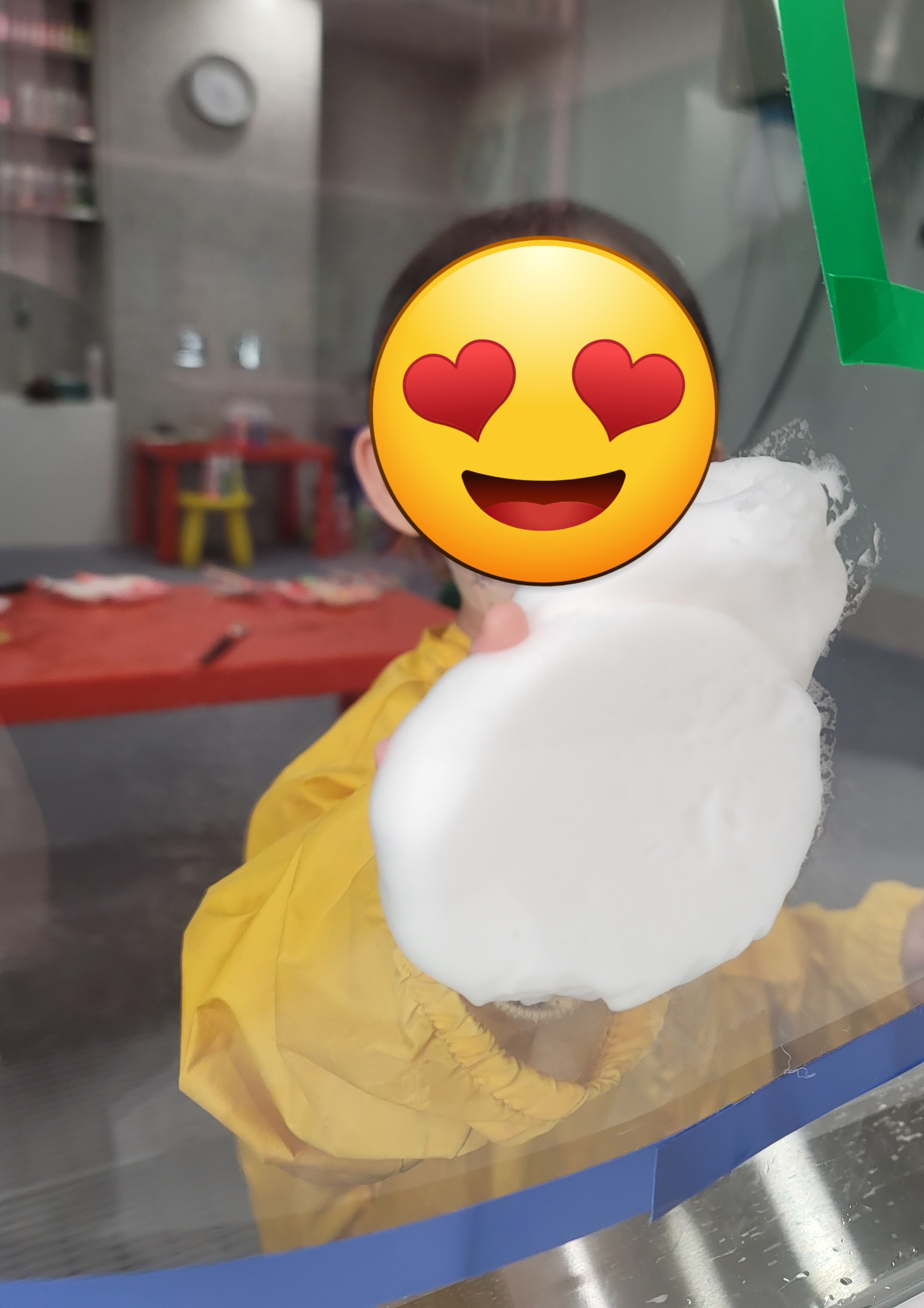 결국 기계를 통해 많은 거품이 나왔고 재미있게 놀았습니다.