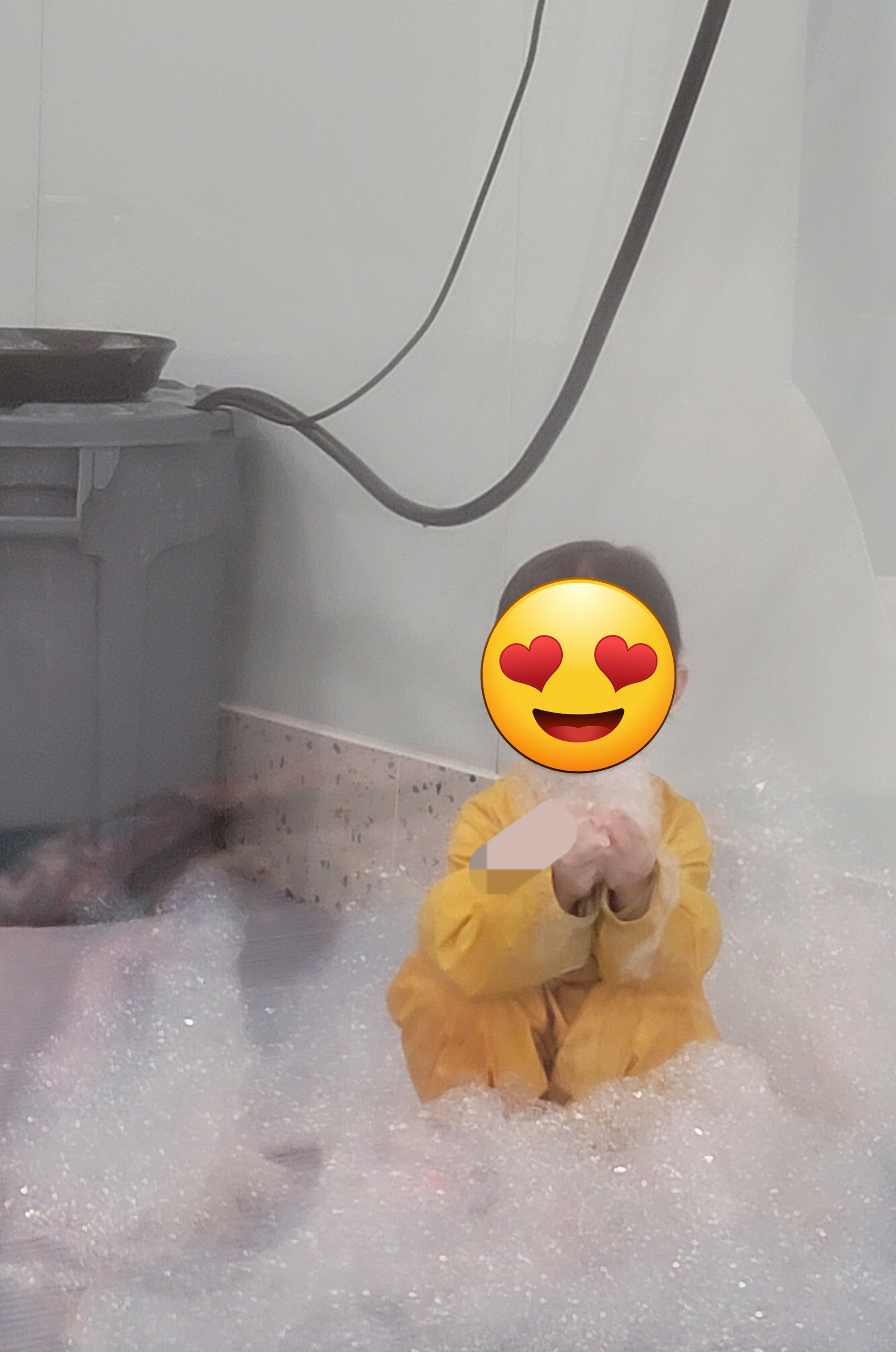 딸 랑구가 거품 속으로 들어가 목욕하듯 몸을 비비며 즐겁게 노는 모습을 보여줬다.