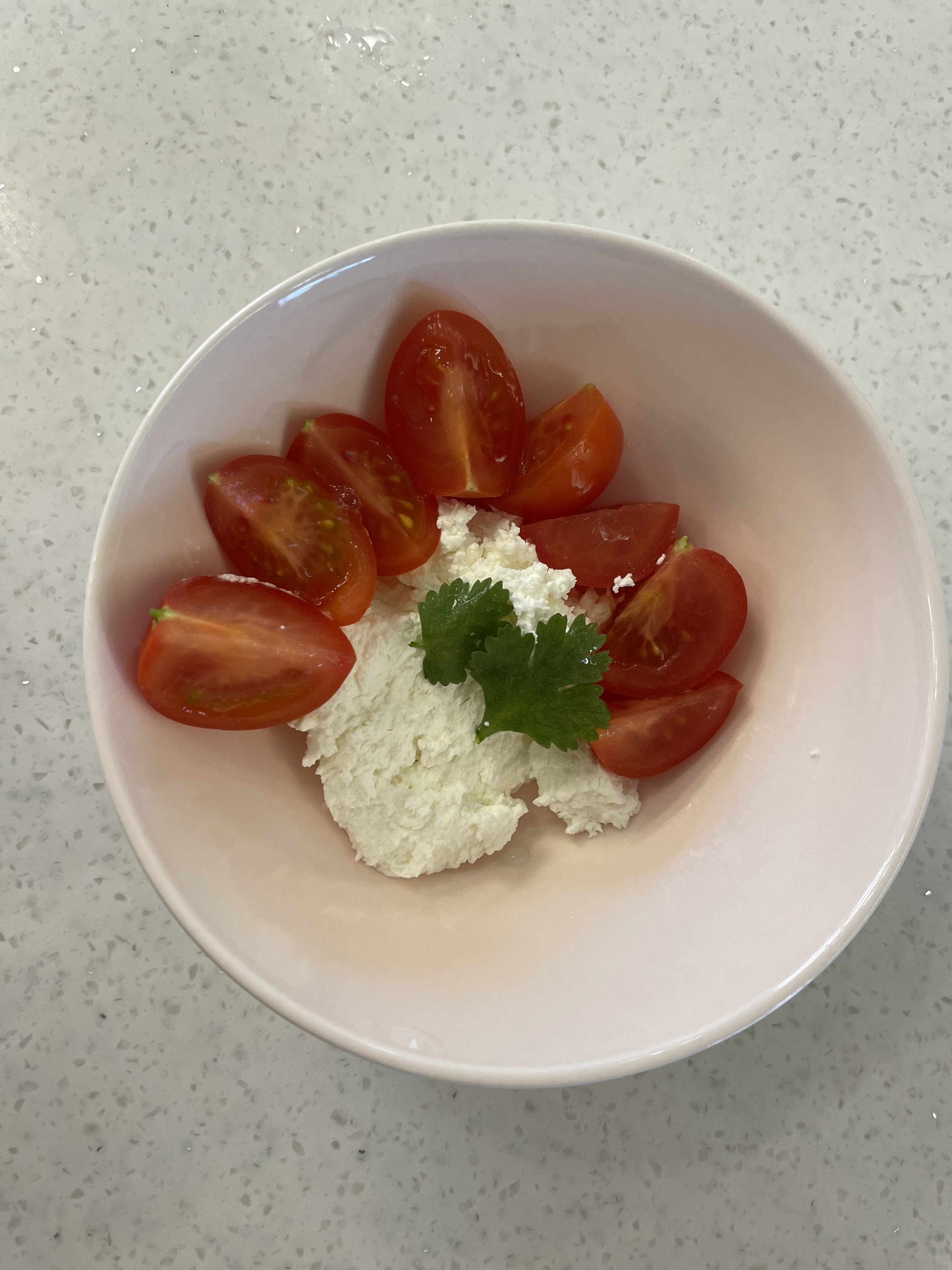 오늘 같이 산 방울토마토에 고수잎을 올려 먹어봤어요.