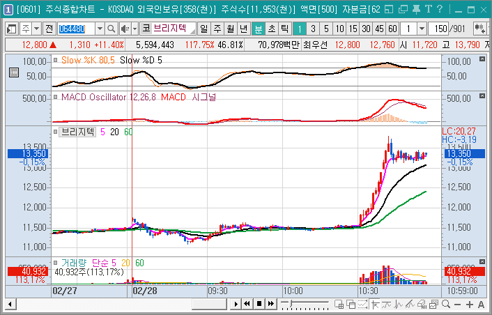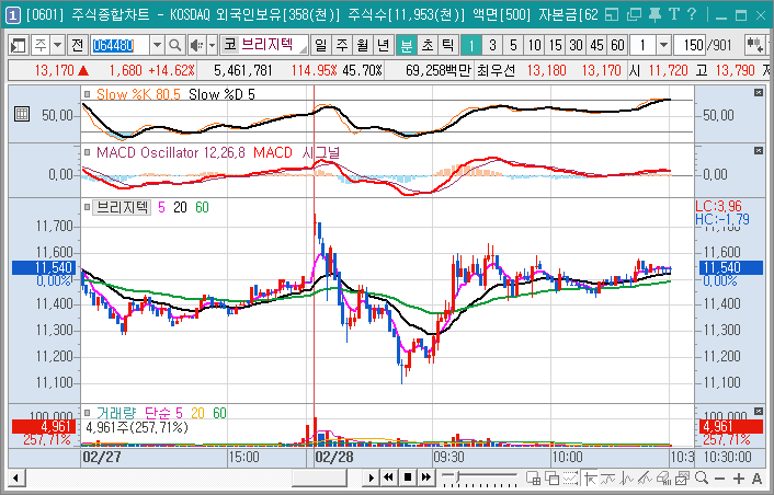 브릿지테크.. 장 시작 후 하락하여 마이너스(-) 상태에서 소폭 상승.. 하지만 횡보만…