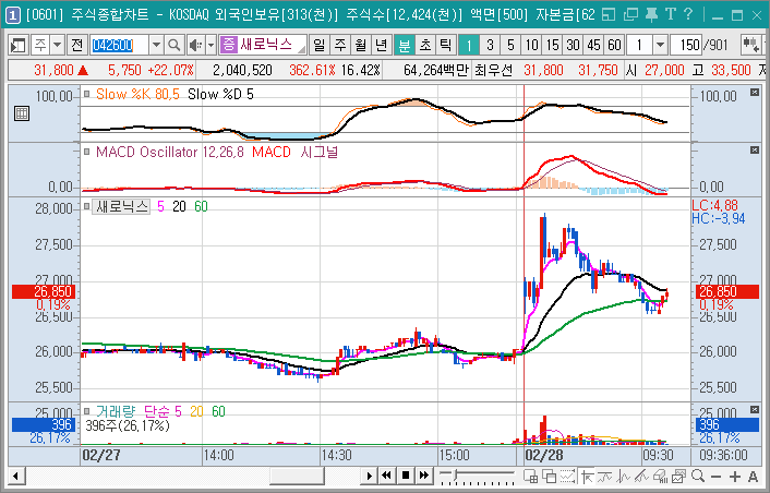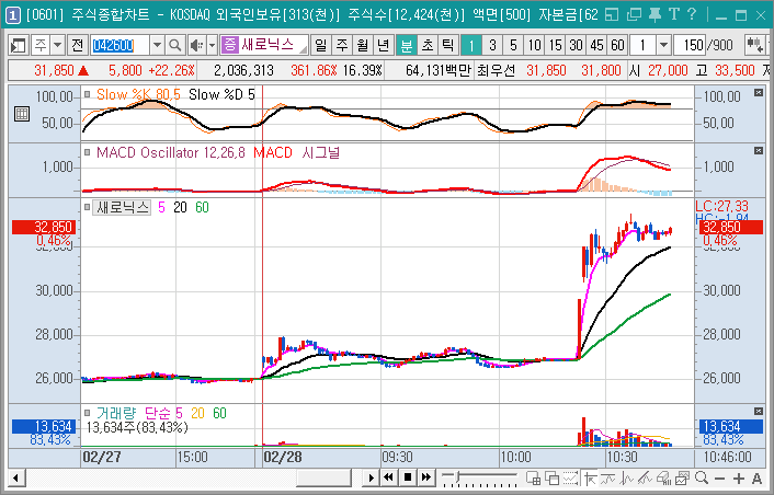 뉴닉스..장 초반 소폭 상승 후 하락.. 그리고 반등 조짐..